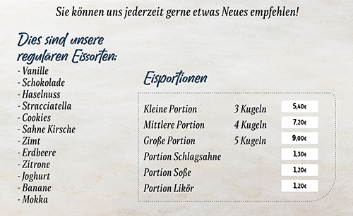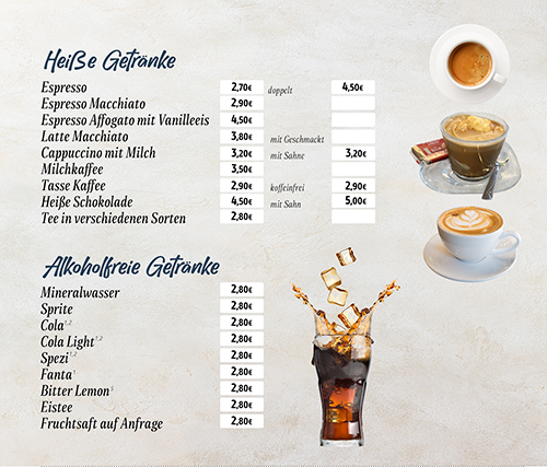 Auf Wunsch erhalten Sie Einblick in unsere Allergenliste, Bitte sprechen Sie uns an Zusatzstoffe: